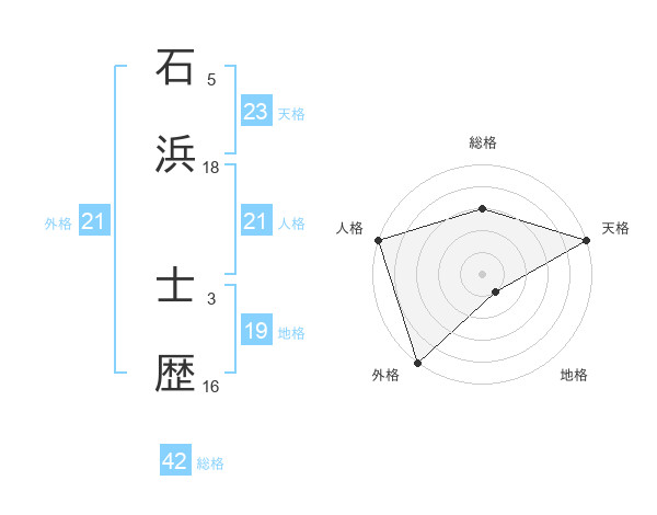 石浜 士歴さんを姓名の画数から五運を鑑定