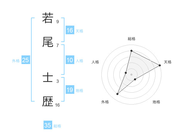 若尾 士歴さんを姓名の画数から五運を鑑定