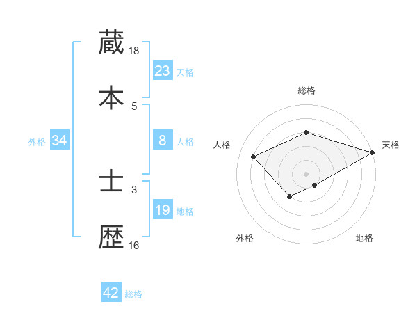 蔵本 士歴さんの天格は23画の5点!