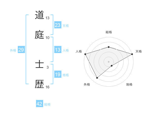 道庭 士歴さんの天格は23画の5点!