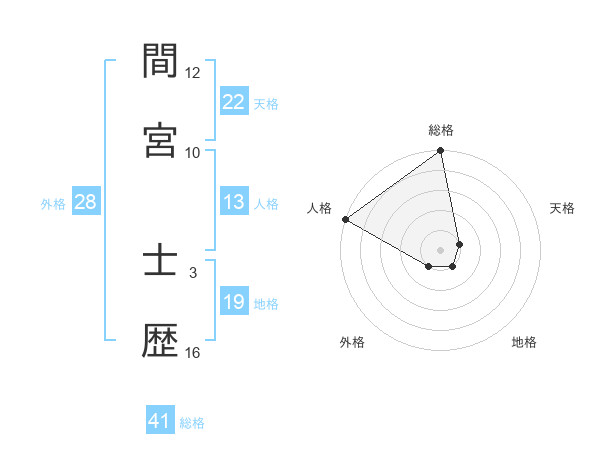 間宮 士歴さんの総格は41画の5点!