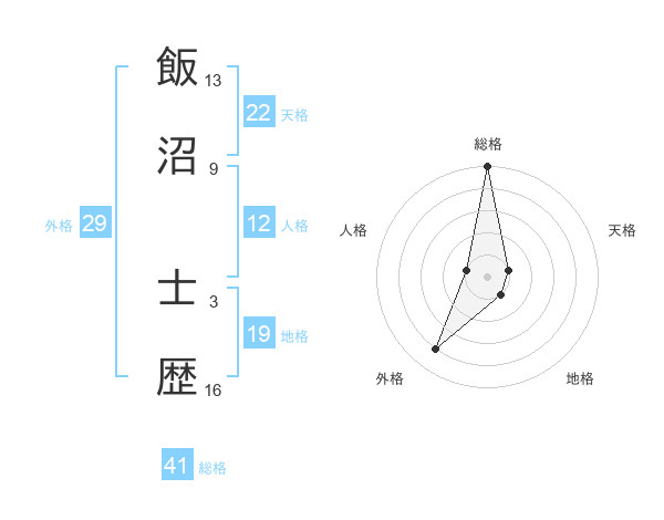 飯沼 士歴さんの総格は41画の5点!