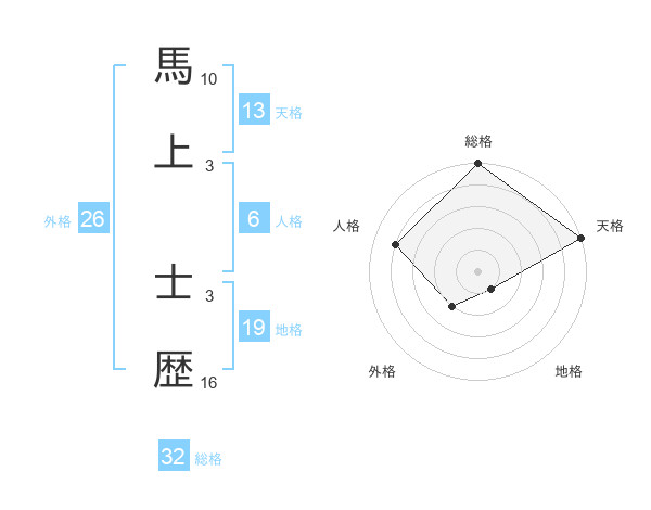 馬上 士歴さんを姓名の画数から五運を鑑定