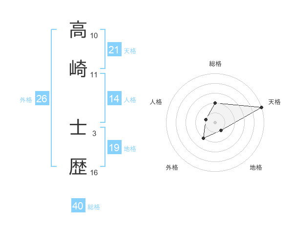 高崎 士歴さんの天格は21画の5点!