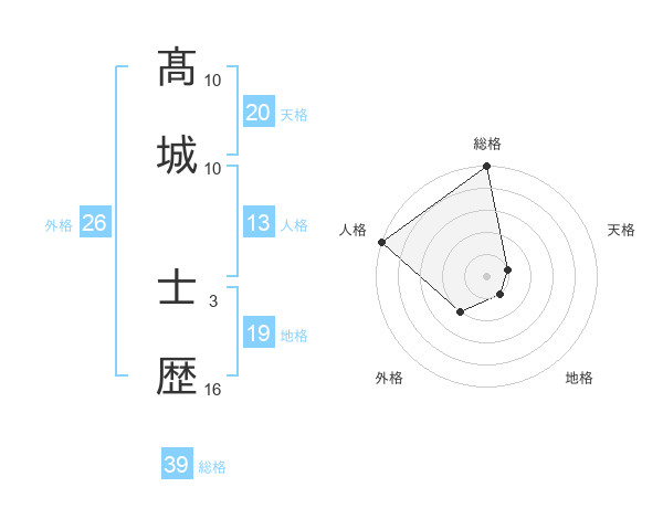 髙城 士歴さんの総格は39画の5点!