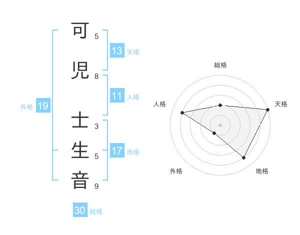 可児 士生音さんの天格は13画の5点!