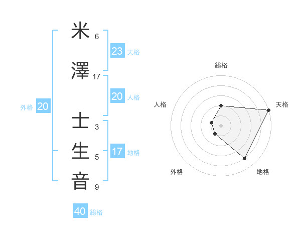 米澤 士生音さんの天格は23画の5点!