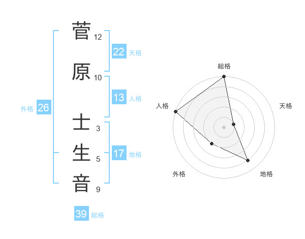 菅原 士生音さんの天格は22画の1点!