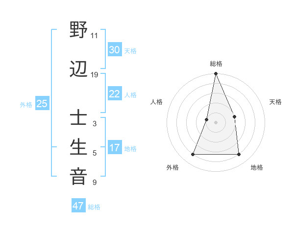 野辺 士生音さんを姓名の画数から五運を鑑定