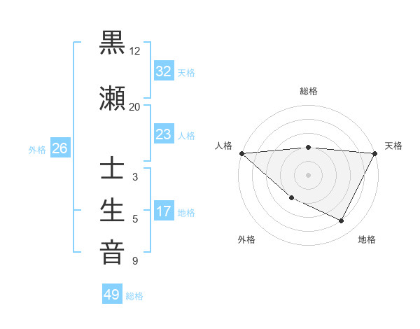 黒瀬 士生音さんを姓名の画数から五運を鑑定
