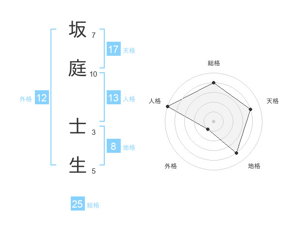 坂庭 士生さんを姓名の画数から五運を鑑定
