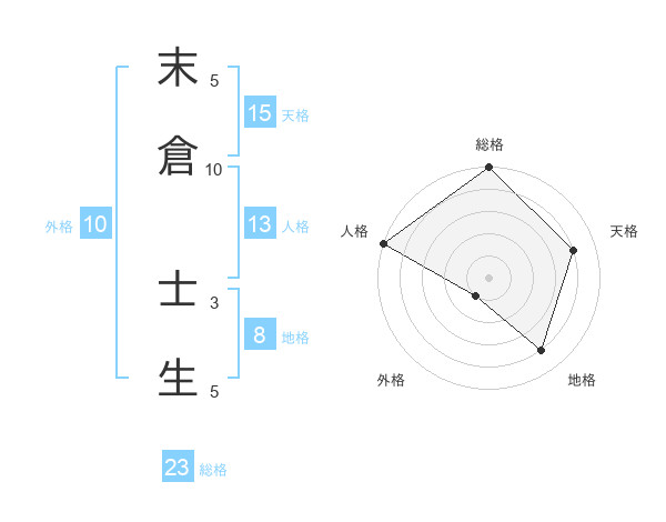 末倉 士生さんの総格は23画の5点!