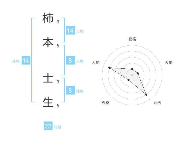 柿本 士生さんの地格は8画の4点!
