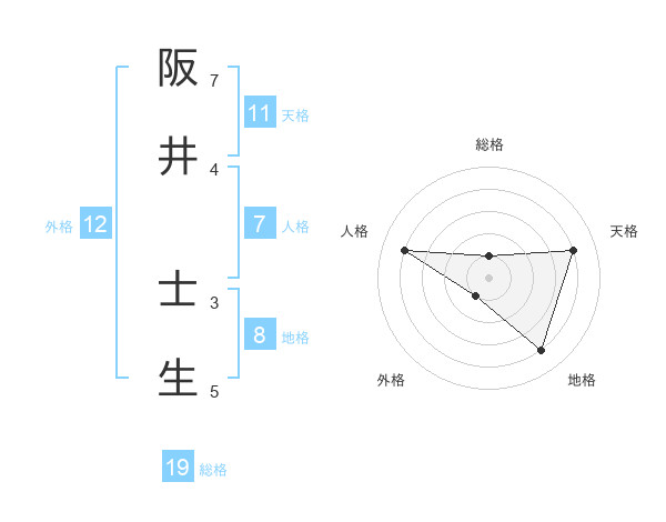 阪井 士生さんの総格は19画の1点!