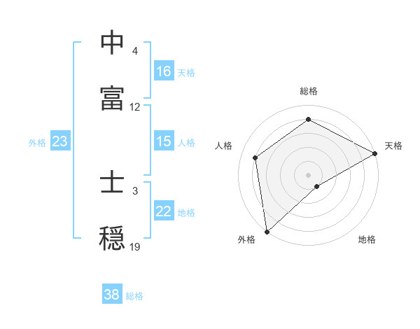 中富 士穏さんの総格は38画の4点!