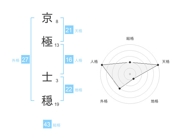 家系が持つ宿命的な運勢を表します。祖先から受け継いだ苗字ですので自分の力が及びません。家柄を象徴します。