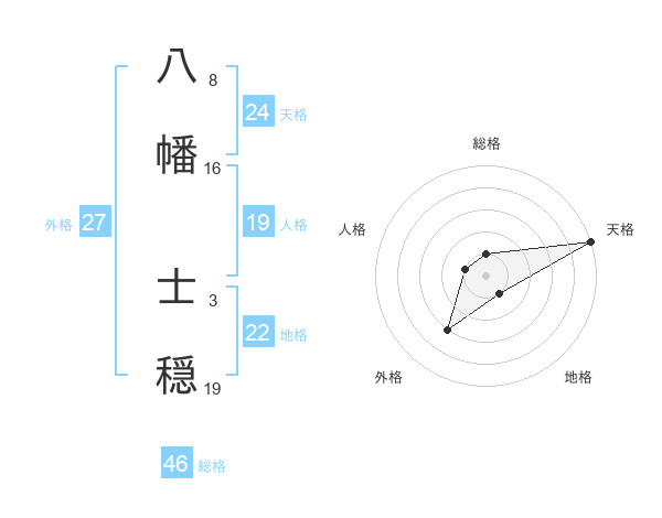 八幡 士穏さんを姓名の画数から五運を鑑定