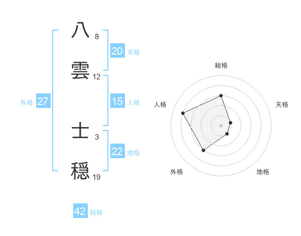八雲 士穏さんを姓名の画数から五運を鑑定