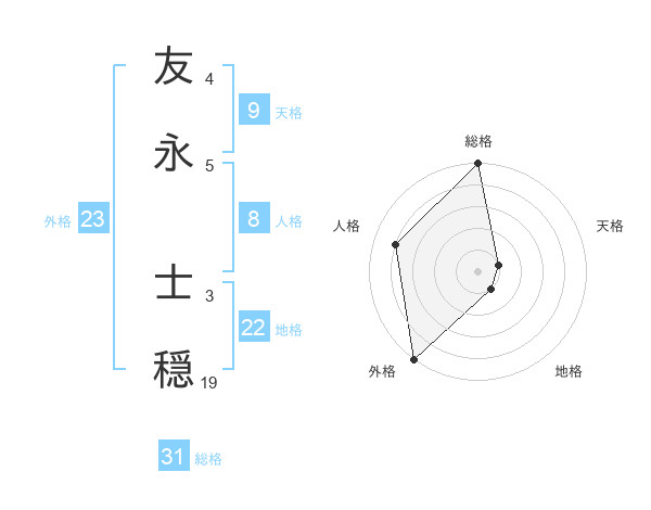 家系が持つ宿命的な運勢を表します。祖先から受け継いだ苗字ですので自分の力が及びません。家柄を象徴します。