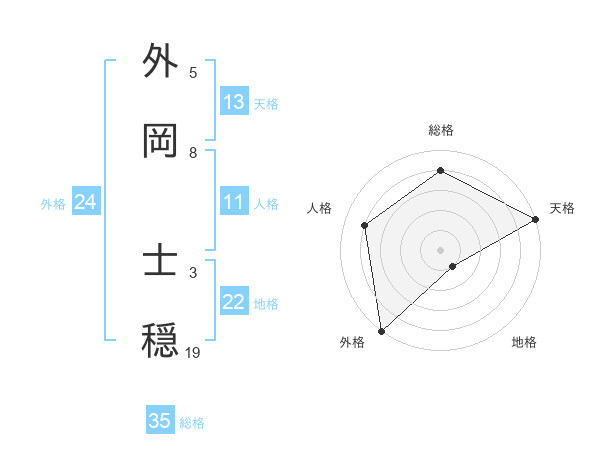 外岡 士穏さんの天格は13画の5点!