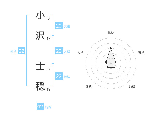 小沢 士穏さんの地格は22画の1点!