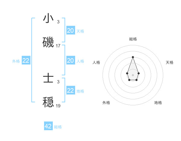 小磯 士穏さんの地格は22画の1点!