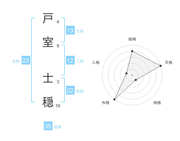 戸室 士穏さんの外格は23画の5点!