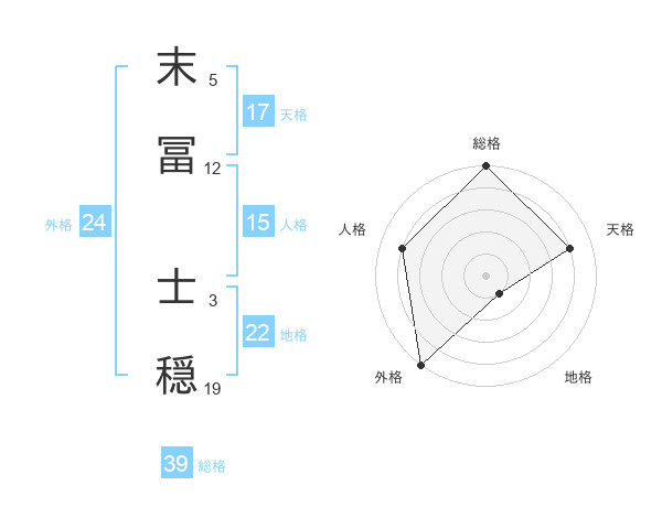 末冨 士穏さんを姓名の画数から五運を鑑定