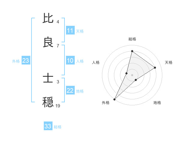 比良 士穏さんの総格は33画の4点!