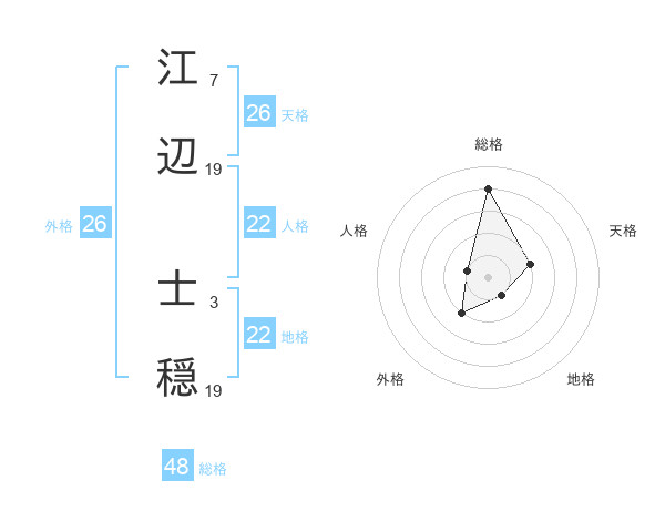 江辺 士穏さんの総格は48画の4点!