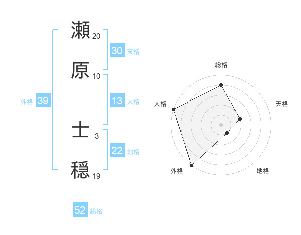 瀬原 士穏さんを姓名の画数から五運を鑑定