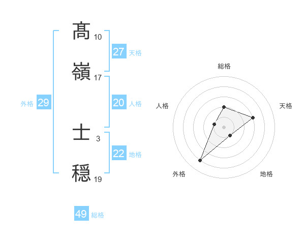 髙嶺 士穏さんの天格は27画の3点!