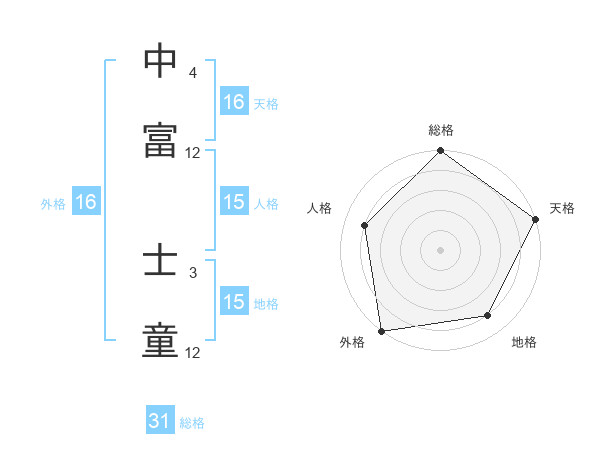 中富 士童さんの総格は31画の5点!