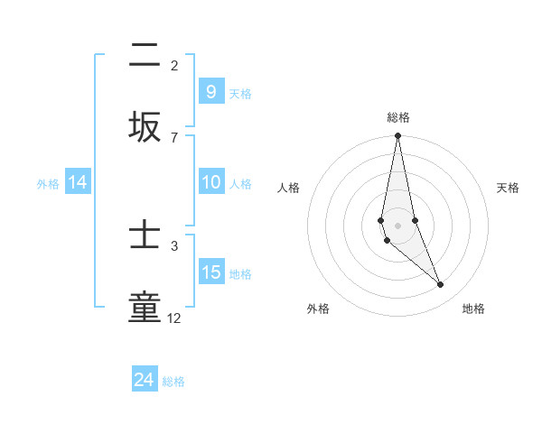 二坂 士童さんの総格は24画の5点!