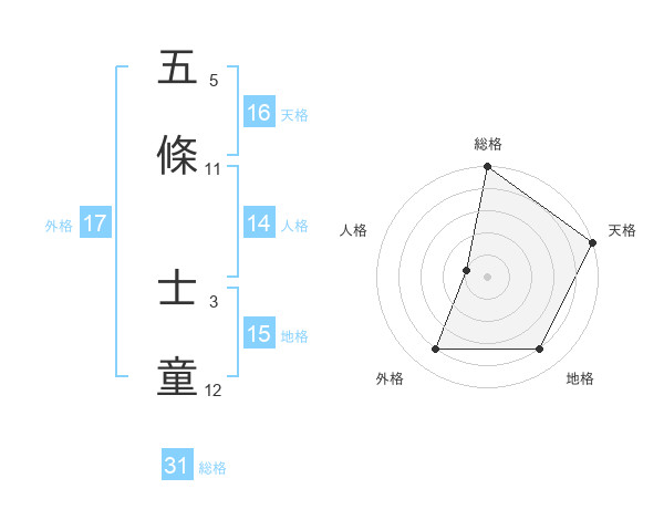 五條 士童さんの天格は16画の5点!