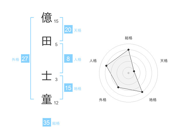 億田 士童さんの地格は15画の4点!