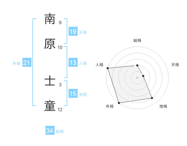 南原 士童さんの外格は21画の5点!