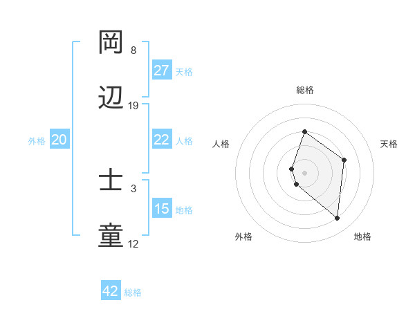 岡辺 士童さんの総格は42画の3点!