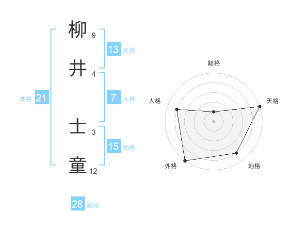 柳井 士童さんの外格は21画の5点!