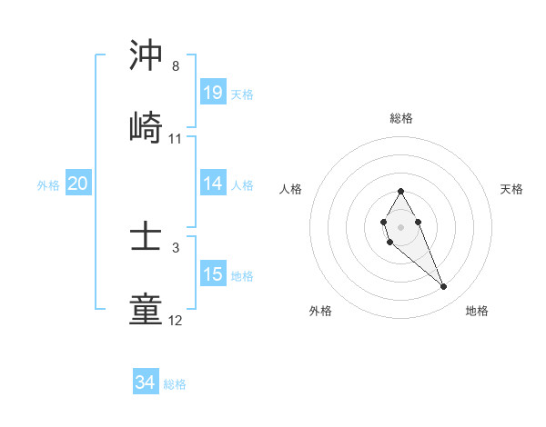 沖崎 士童さんの総格は34画の2点!
