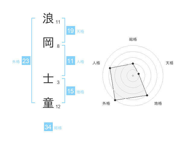 浪岡 士童さんの外格は23画の5点!