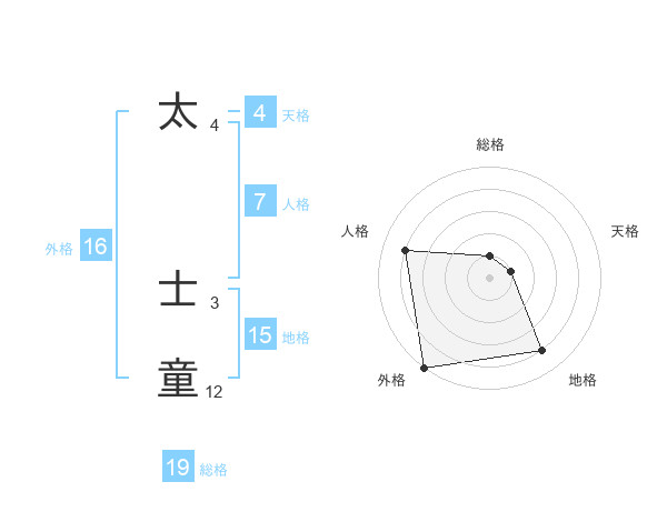 太 士童さんの地格は15画の4点!