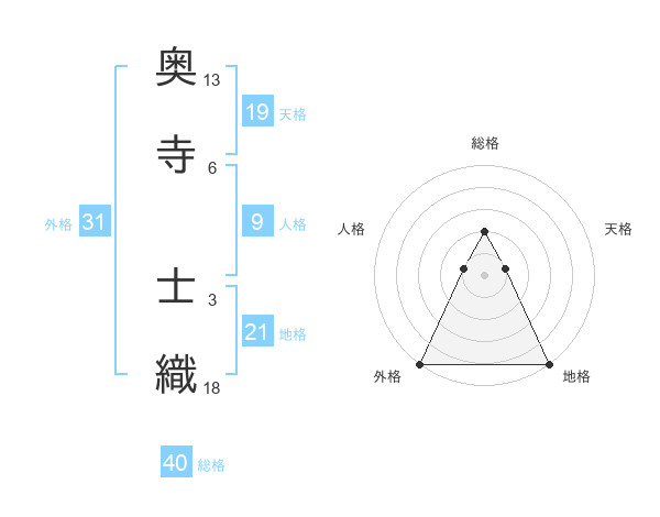 奥寺 士織さんを姓名の画数から五運を鑑定