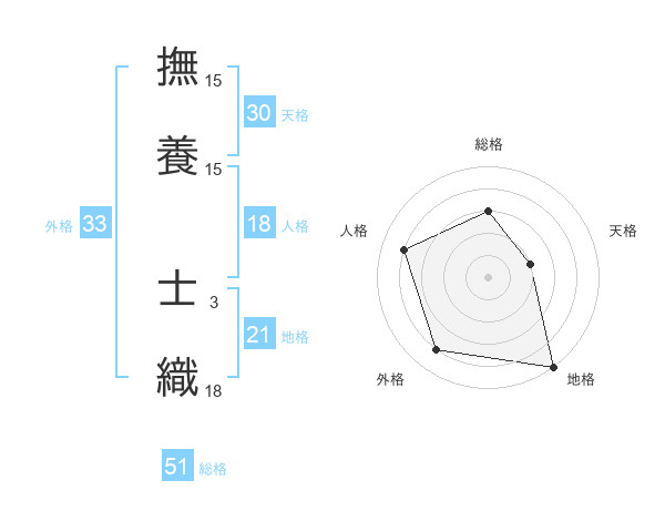 撫養 士織さんの総格は51画の3点!