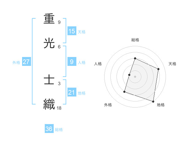 重光 士織さんの天格は15画の4点!