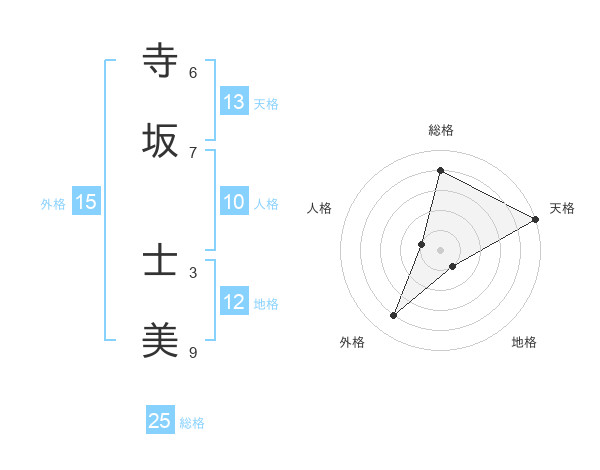寺坂 士美さんの天格は13画の5点!