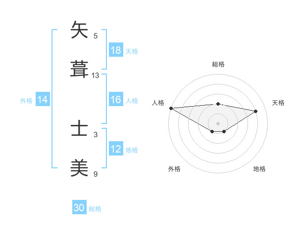矢葺 士美さんの総格は30画の2点!
