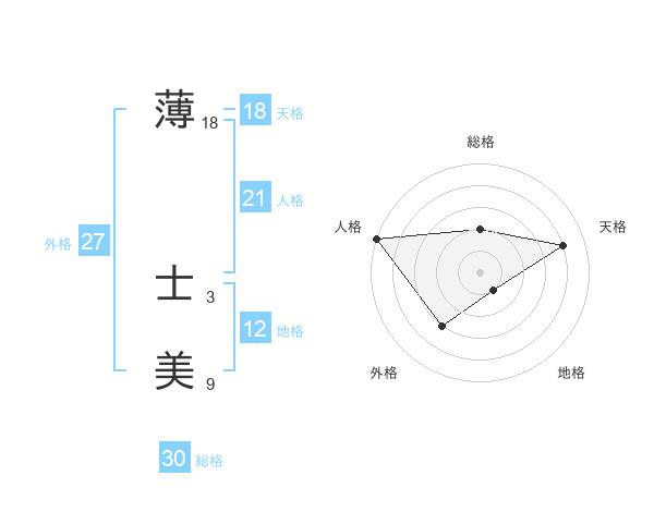 薄 士美さんの天格は18画の4点!