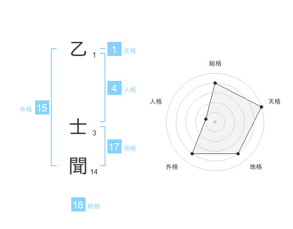 乙 士聞さんの地格は17画の4点!