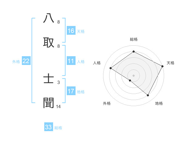 八取 士聞さんの総格は33画の4点!